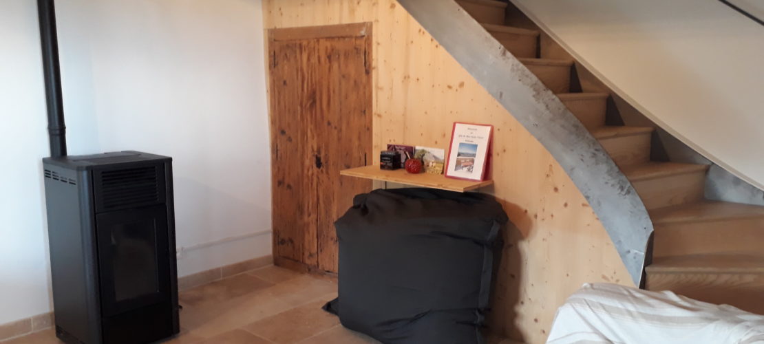 Un espace « salon » vous permettra de vous reposer sur un canapé au coin du poêle à granules (en hiver !).